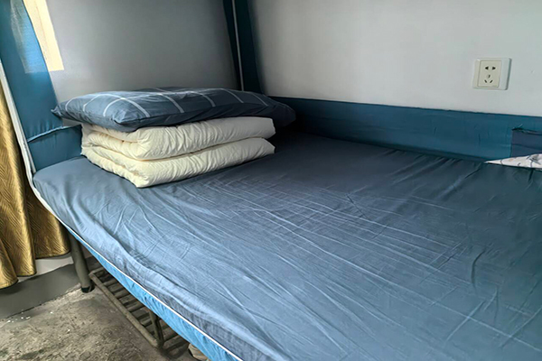 寝室内,在教官的带领下,同学们左手压被、右手捏角,将蓬松的棉被反复折叠、按压,直到边缘如刀刃般锋利,面块如豆腐般方正。从整理床铺到摆放生活用品,每一件物品都有固定位置,每一个动作都力求标准,方寸空间里,严谨与规范的种子悄然生根。