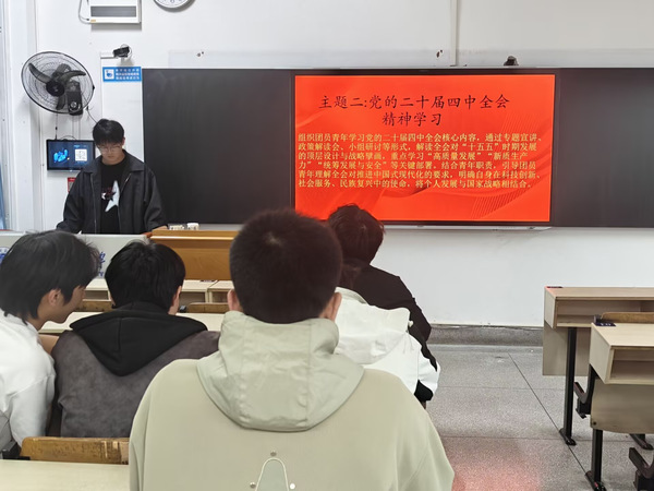 实践案例引发强烈共鸣。班主任围绕“坚持和完善中国特色社会主义制度、推进国家治理体系和治理能力现代化”等重点,用“青年话语”解读“教育强国、科技强国、人才强国”建设与专业学习的结合点。同学们围绕“如何立足专业为中国式现代化贡献力量?”展开热各班级以《中国共产党第二十届中央委员会第四次全体会议公报》为核心学习材料,系统学习全会关于“十五五”时期经济社会发展的战略部署。班会集中播放短片《重磅微视频|总书记擘画中国式现代化新篇章》,通过生动影像直观感受中国式现代化的壮阔历程与宏伟蓝图。视频中“把小我融入大我”的青年烈讨论,推动二十届四中全会精神学深悟透、见行见效。