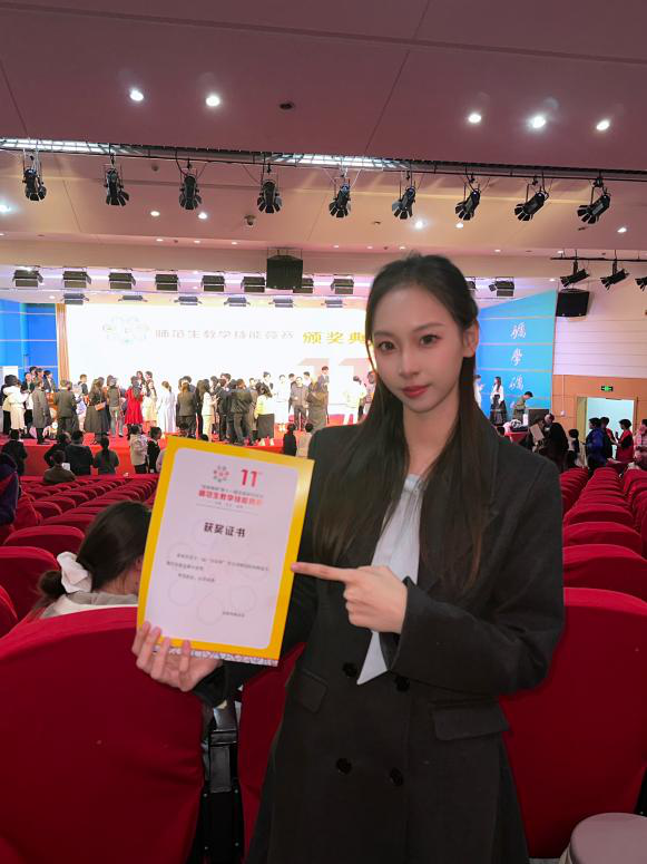 从校级选拔到全国决赛,赖家宜同学均以高标准严格要求自己。决赛环节聚焦“教学设计、课件制作、即兴讲演、模拟上课·板书”四大内容,采用“断网封闭+两小时限时备课”机制,对参赛者的专业素养、创新能力和临场应变能力提出了极高要求。这一优异成绩的取得,既是赖家宜同学个人勤奋努力的结果,也是我院小学教育专业人才培养质量的集中体现。本专业一直紧密对接基础教育改革需求,注重学生教学实践能力的提升。此次获奖,正是该专业长期重视师范生核心素养培育、强化教学技能训练的效果彰显。学院将以此为契机,进一步总结推广“以赛促学、以赛促练”的成功经验,持续深化改革人才培养模式,不断完善实践教学体系,为培养更多“下得去、教得好、有发展”的优秀教师而不懈努力!(通讯员:黄娅)