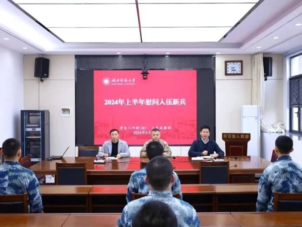 为全面了解新兵在役前训练的思想,鼓励更多优秀学子献身国防事业。3月8日上午,我校2024年上半年慰问入伍新兵活动在黄石港区武装部报告厅成功举行。黄石港区武装部政委徐志猛,校学工部、人武部副部长胡红贵,退伍老兵代表和入伍新兵参加活动,活动由人武部金高辉老师主持。