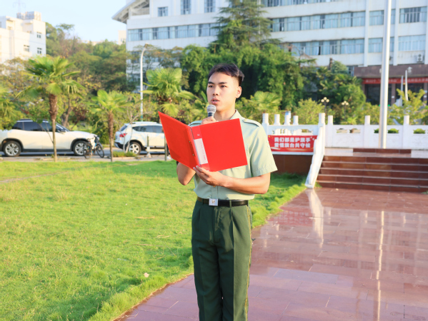 音乐舞蹈学院合唱团同学们深情演唱《我爱你,中国》,凝聚起全场师生对先烈历史的深切缅怀、对祖国山河的深情热爱。物理与电子科学学院退伍学生代表崔世琨同学作国旗下的演讲,分享他身着戎装的时光里对家国责任的理解,并呼吁同学们既做抗战精神的传承者,更做民族复兴的建设者。
