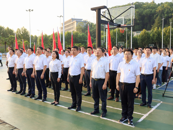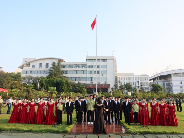 今天是中国人民抗日战争暨世界反法西斯战争胜利80周年纪念日。早上6时50分,学校在校中心篮球场举行“厚植爱国情 砥砺报国志”2025年秋季学期“开学第一课”升国旗仪式。全体在校校领导,党政办、组织部、宣传部、学工部、教务处、研究生院、保卫处、团委、后勤管理中心等相关职能部门负责人,物理与电子科学学院、音乐舞蹈学院班子成员,各学院分管学生工作负责人,全体辅导员,各学院学生代表、校青马班学员、校级学生干部代表、校国防先锋社学生代表参加升旗仪式。