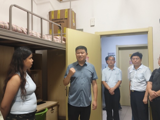 杨志丹特别强调了生活中的安全注意事项,提醒新生们要时刻注意用电安全,不得使用违规电器;外出时注意人身安全和财产安全,并防范电信诈骗、保护自身权益;车录彬认真倾听新生的想法,耐心解答大家关于课程学习、校园生活的疑问,并嘱咐大家要注意宿舍卫生问题,共同维护干净整洁的宿舍环境,营造良好的学习、生活氛围;李治平细致询问新生入校后的适应情况,并希望新生主动熟悉校园环境、积极融入集体生活,多参与校园活动,合理规划大学学习与生活,尽快适应新的阶段;各新生班主任与学班分别走访了各自班级宿舍,他们鼓励大家珍惜大学时光,要以积极向上的心态,面对崭新的校园生活。尽早明确学习目标,专注学业,遇到学习及生活上的困难及时向老师反映或沟通。