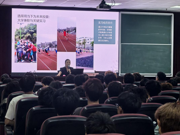 9月11日晚,体育学院在信息大楼报告厅举办2025级新生入学教育校友经验分享活动。本次活动特邀2015届优秀校友、黄石市第十八中学教务处主任龚恩分享,2025级全体新生参加本次活动。