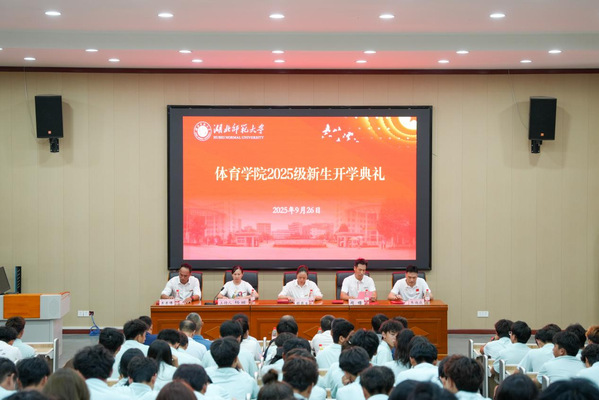 9月26日下午3时,湖北师范大学体育学院2025级新生开学典礼在艺术大楼学术报告厅举行。学院党委书记胡燕生、院长周曙等领导班子成员、各系部主任、2025级新生班主任、研究生班主任、全体2025级本科及研究生新生以及高年级学生代表共同参加了典礼。典礼由体育学院党委副书记杨丽主持。