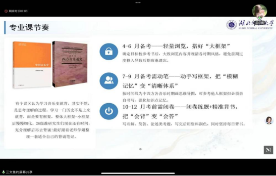 为助力考研学生明晰考研路径、高效规划备考,音乐舞蹈学院于10月19日晚举办线上考研经验分享会。会议邀请了两名2025级研究生代表进行经验分享,为2022级、2023学子考研之路指引方向、传递温暖。