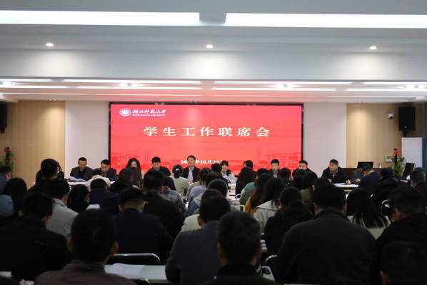 10月27日下午,学校在“一站式”社区总站312会议室召开学生工作联席会。校党委副书记、副校长余涛出席会议并讲话,宣传部、学工部、教务处、研究生院、招就处、国际教育学院、保卫处、团委、后勤管理中心等单位负责人,各学院分管学生工作负责人、全体辅导员参加会议。学工部、人武部部长杨志丹主持会议。