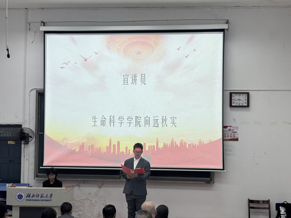 为筑牢学生思想根基,砥砺奋进力量,10月23日下午,生命科学学院团总支组织部于生科院8j11教室开展“道德讲堂”主题活动,湖北湖师教育科技发展有限公司代表、学校图书馆教师代表、生命科学学院党委副书记李文静、副院长陈亮、辅导员单紫云和24、25级学生代表参加活动。