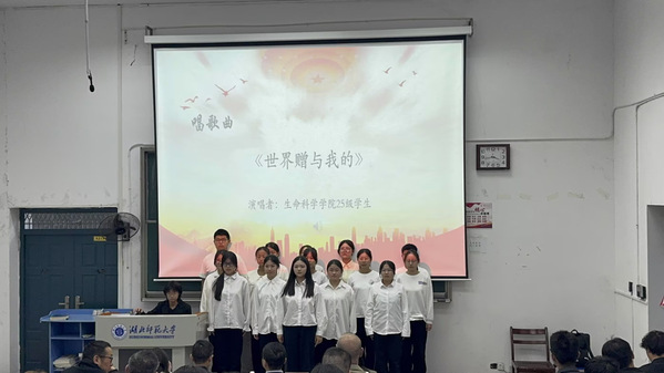 全体师生进行“扪心三问”自省。自省结束后,25级学生代表演唱歌曲《世界赠与我的》,以此表达对世界的感恩之情,以及对当下生活的珍惜与感激。