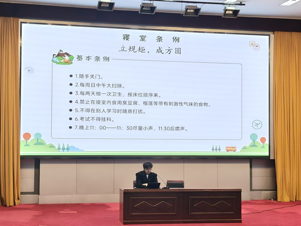 在“文明寝室经验分享”这一环节,“文明寝室”寝室长代表冯诗梵、吴天琪分别带来了兼具温度与实用性的经验,引发全场共鸣。这些经验包括定制趣味宿舍公约、搭建学习互助体系、巧妙解决宿舍冲突等方面,有助于寝室长快速掌握宿舍管理与心理关怀技巧。