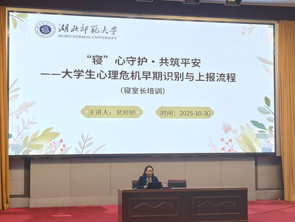 为铸牢校园心理健康基层防线,充分发挥寝室长在学生心理支持体系中的“前沿纽带”作用,10月30日,学生工作部分别于湖师大礼堂、教育大楼报告厅组织开展2025年心理健康教育宣传系列活动之寝室长专题培训,来自各学院25级全体寝室长共同参与。