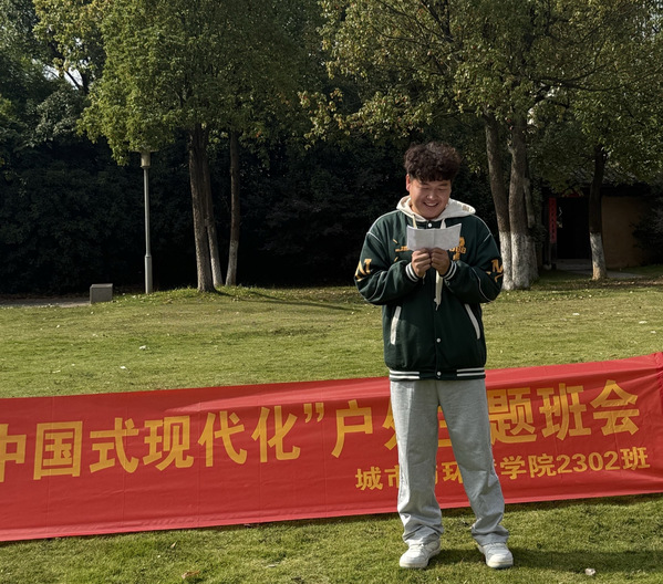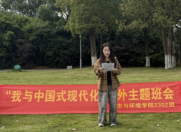 为深入学习领会国家发展宏伟蓝图,引导青年学生深刻理解中国式现代化的内涵与意义,自觉将个人成长融入国家发展大局,城市与环境学院2302班于11月4日在黄石市法治文化公园组织开展了“我与中国式现代化”主题班会。班会由班主任郭文老师主持,班级全体同学参加。