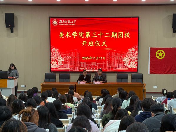 为引导青年学子深刻领悟伟大抗战精神,强化学生干部队伍政治素养与责任担当,11月11日中午,美术学院在艺术大楼报告厅举行以“以艺为笔忆峥嵘,以志为帆担使命”为主题的第三十二期团校开班仪式暨团校第一讲。校团委副书记周家吉,美术学院党委副书记刘懿钊、全体辅导员、团学组织学生干部代表及本期团校学员共同参加。仪式由美术学院团委副书记柳昌梅主持。