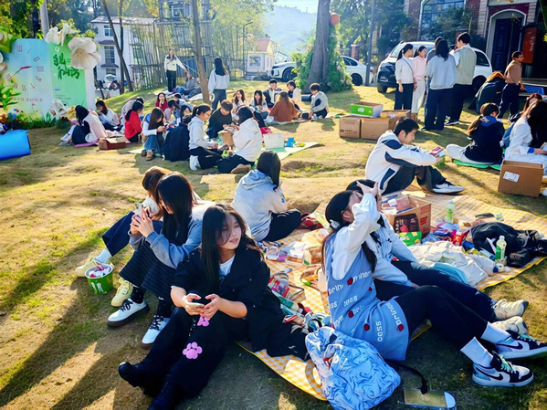 活动伊始,“关键词接龙”与“一圈到底”两大破冰环节迅速点燃现场氛围。围坐成圈的成员们分享着,酸甜滋味在舌尖化开,话匣子也随之打开,在趣味接龙中畅谈兴趣热爱;手拉手传递呼啦圈时,各组争分夺秒、默契配合,肢体的协作让陌生感瞬间消融,欢声笑语与零食的香气交织在青山湾的午后,暖意融融。