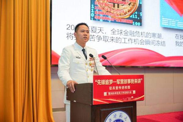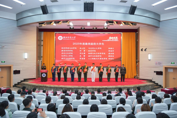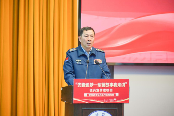 12月5日下午,“先锋追梦——军营故事我来讲”征兵宣传进校园暨2025年征兵工作总结大会在教育大楼报告厅举行。市委常委、市征兵和民兵工作领导小组常务副组长、黄石军分区大校司令员贾宇峰,黄石港区人武部上校部长南小勇,校党委副书记、校长雷儒金出席活动。党政办、宣传部、学工部、人武部、教务处、财务处、招就处、团委等单位负责人,各学院分管学生工作负责人、负责人武工作辅导员及学生代表参加活动。