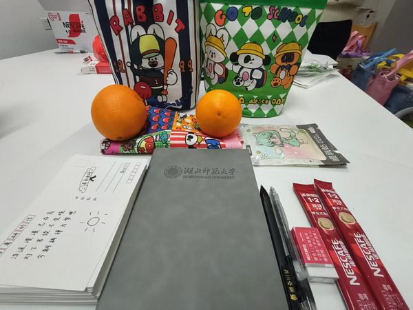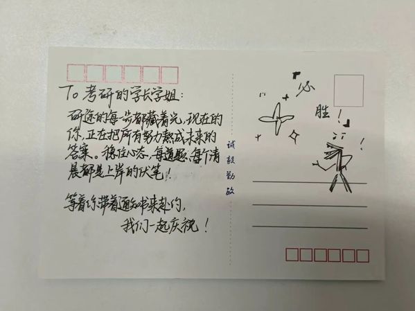 动员会后,学院老师为考研学生代表送上精心准备的“考研加油包”。笔记本寓意金榜题名、书写未来,咖啡助力提神醒脑、保持状态,考试用具护航考场顺利,满载学弟学妹手写祝福的明信片传递温暖情谊,而橙子则象征心想事“橙”、马到“橙”功。每一份礼物都承载着学院师生最诚挚的关怀与祝愿,为即将踏上考场的考研学子注入温暖力量。