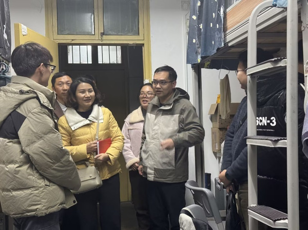 硕士研究生考试与期末考试接踵而至,寒假假期即将开启。为筑牢校园安全防线,深化思政育人实效,精准掌握学生备考状态与思想动态,12月17日晚,学院党委书记严海燕、院长高红亮、党委副书记金高辉、副院长杨青胜、院长助理程伶俐、全体辅导员及班主任以一站式学生社区为核心阵地,开展期末暨假期前专项走访教育活动,推动思政教育融入宿舍管理,用暖心关怀架起师生连心桥。