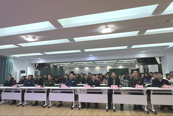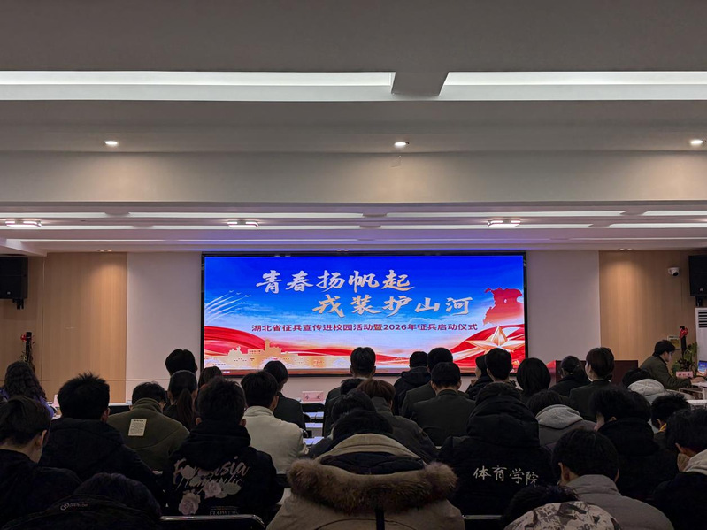 12月25日晚,“青春扬帆起 戎装护山河”湖北省征兵宣传进校园活动暨2026年征兵启动仪式在武汉纺织大学举行。我校在“一站式”社区总站312会议室设立分会场,黄石市委常委、军分区大校司令员贾宇峰,市征兵办主任、军分区大校副司令员陈高泉,市征兵办副主任、军分区动员处上校处长王震,黄石港区人武部上校部长南小勇,校党委书记李宏,校党委副书记、副校长余涛,党政办,学工部、人武部,各学院分管学生工作负责人及学生代表共同参与。全校17个学院同步设置分会场,组织师生在线观看。