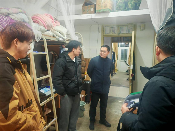 晚上9点半,排查组成员全体集合,根据学生宿舍分布情况分组分片推进走访工作。此次排查重点是核查在校学生留校情况,确保留校学子底数清、去向明、信息准。走访现场暖意融融,学院领导与老师们深入宿舍与学生面对面交流,详细询问大家的留校原因、假期生活保障、科研进度及寒假规划等事宜。学院领导对留校研究生潜心钻研、刻苦攻关的精神给予充分肯定,同时叮嘱同学们合理平衡科研与作息,加强体育锻炼,及时增添衣物做好防寒保暖,兼顾学习效率与身体健康。