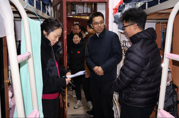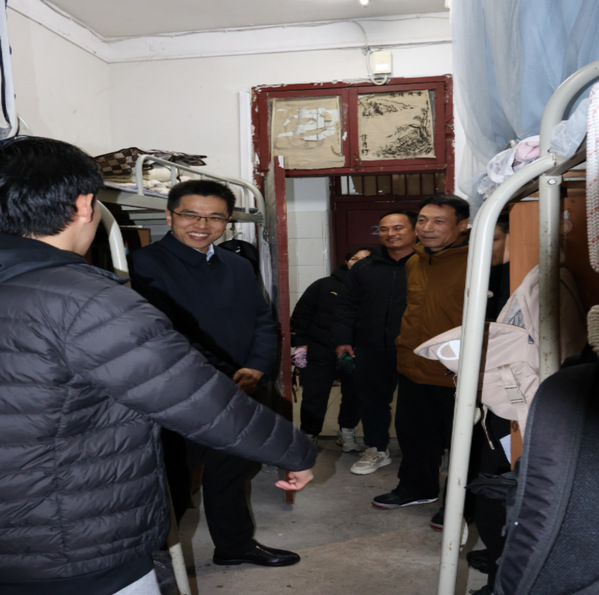 春回校园,情暖人心。为第一时间掌握学生返校后的思想动态,排除宿舍安全隐患,将学校的关怀精准送到学生身边,3月1日晚,体育学院组织开展新学期宿舍走访活动。校党委常委、副校长刘美风在学院领导班子、全体辅导员、班主任及学生干部代表的陪同下,深入学生宿舍,看望慰问返校学子。