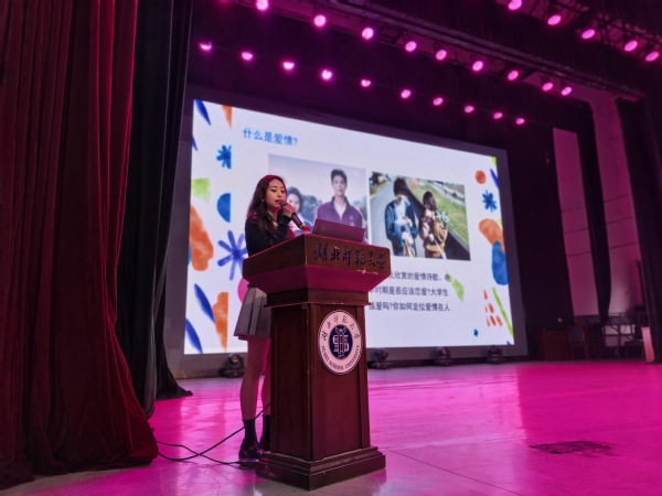 讲座伊始,李欣奕老师结合大学生恋爱实际,深入剖析了当前大学生恋爱现状及常见认知误区。她明确指出,控制不等于爱,依赖不等于爱,并借助斯腾伯格爱情三角理论,着重强调了亲密、激情与承诺在恋爱关系中的关键作用。